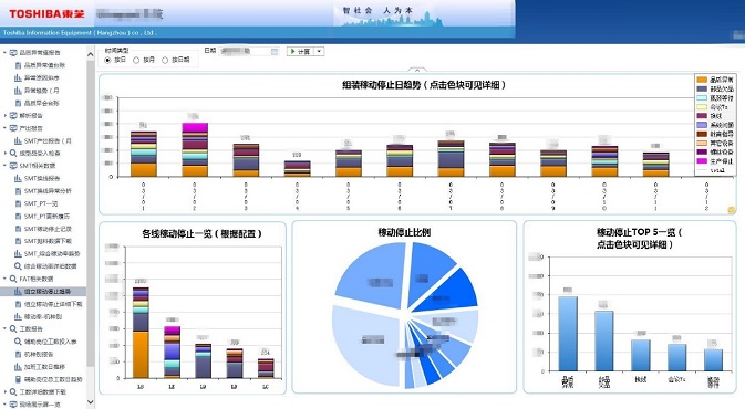 東芝制造車間生產過程中的數據包括車間人員、物料、加工設備、工票、工裝、加工過程等,涉及車間各個部分。面向東芝內部的生產部門,為一線生產人員及質檢部門提供數據填報及數據分析平臺,是一個完全基于互聯網技術構建的智能數據系統。