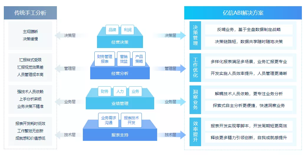 作為國內最早深耕BI領域的軟件公司,億信華辰致力于為政企客戶提供一站式數據分析平臺,此次獲獎的億信ABI滿足用戶從數據填報、ETL數據處理、數據建模到數據分析、數據可視化、移動應用等各個環節的功能需求,覆蓋數據分析完整流程,幫助用戶實現更深入的業務洞察力。