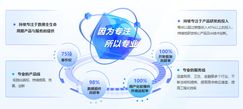 17年來,研發始終在億信華辰占據著重要地位,每年研發投入超過銷售收入45%以上,這也是億信華辰的產品能夠不斷引領時代的原因。成立至今,億信華辰的項目交付成功率近乎100%,取得了遠超同業公司的客戶滿意度。有這樣令人矚目的成績,除了依靠優秀的產品質量,還要歸功于公司“快速響應,精益求精”的服務理念。