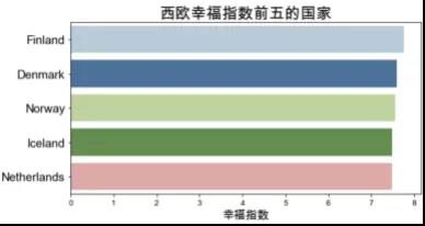 我們發現幸福指數很高的這些國家都為發達國家,有可能是因為這些國家的人口基數少,發展精工業,社會制度以及良好的醫療保障等等因素。而一些發展中國家,例如中國,印度等國家處于中游水平,而幸福指數最低的幾個國家大部分都集中在非洲地區,可能是因為,非洲地區的經濟效益不好,戰亂等因素導致的。下面我們研究各個指標對幸福指數的影響,看看什么指標對幸福指數是影響最大的,換句話說,什么能使人民感到幸福?