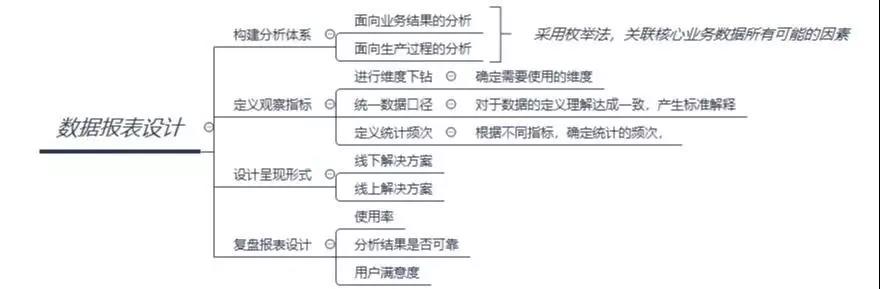 維度細化的過程中,可能會逐漸拆分為一級指標、二級指標……n級指標,但并非拆分中的每一個維度都要作為觀察指標。是否作為報表使用要結(jié)合公司業(yè)務特點并且和業(yè)務部門多次溝通協(xié)調(diào)達成共識。