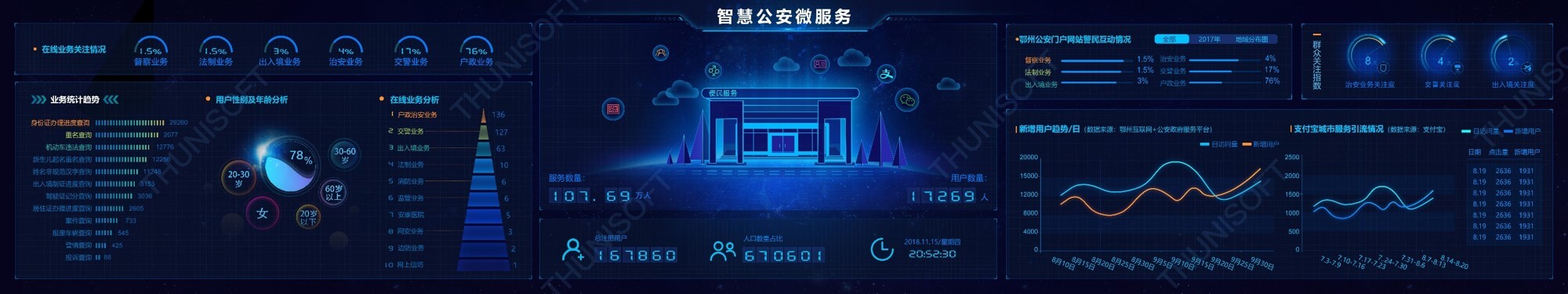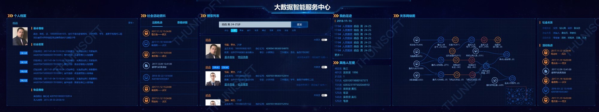 智慧公安實戰(zhàn)應用包括了智慧搜索、智慧建模、智慧服務、智慧監(jiān)督、智慧標簽、智慧小區(qū)、智慧管控以及智慧監(jiān)測,實現(xiàn)個人檔案的查詢,同時關聯(lián)社會關系和活動軌跡并繪制出關系網(wǎng)絡圖,通過建模顯示各模型使用情況和資源訪問量、訪問趨勢,進行在線業(yè)務分析,各類警務案件指標分析,根據(jù)標簽標準生成人員畫像,通過重點人員異常軌跡進行警情監(jiān)測,根據(jù)熱點追蹤進行傳播路徑分析,實現(xiàn)公安智慧化管理。